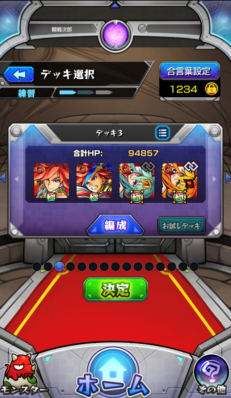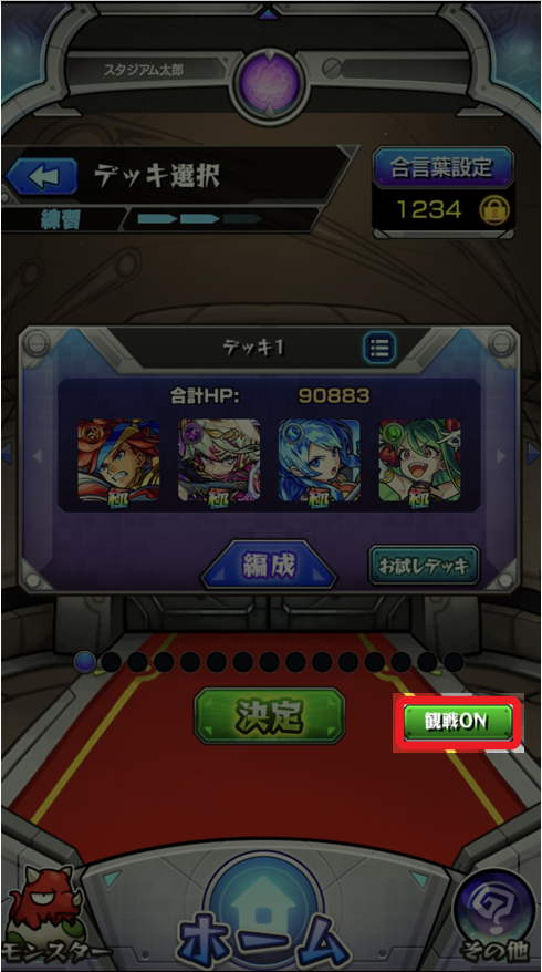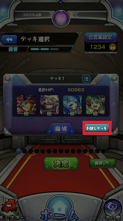 ①ステージを選び、デッキ選択時の「お試しデッキ」ボタンを押す![]()