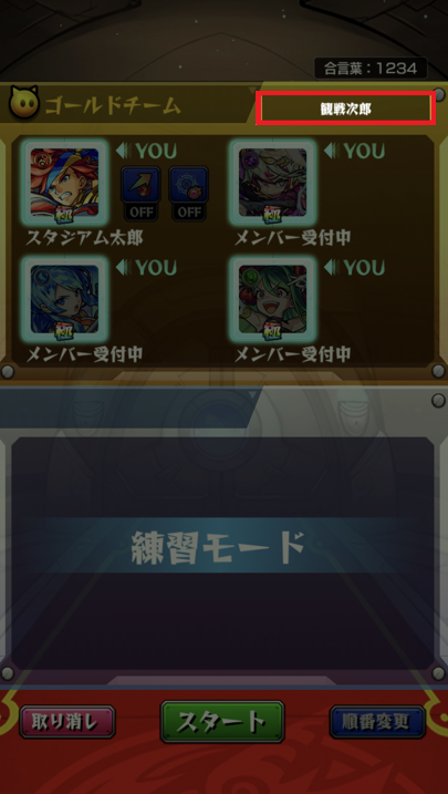 ※観戦onにすることで、観戦プレイヤーが参加することができます![]()