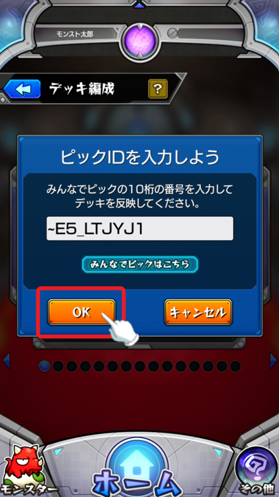 ①みんなでピック内で、ピック結果を出し「このデッキで遊ぶ」を押す。